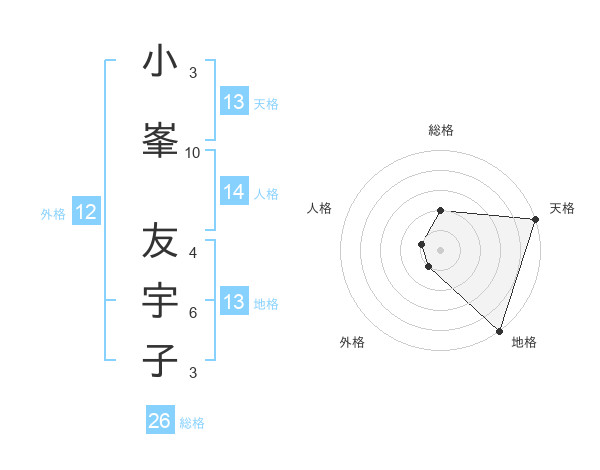 小峯 友宇子さんを姓名の画数から五運を鑑定