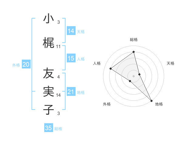 小梶 友実子さんの天格は14画の1点!