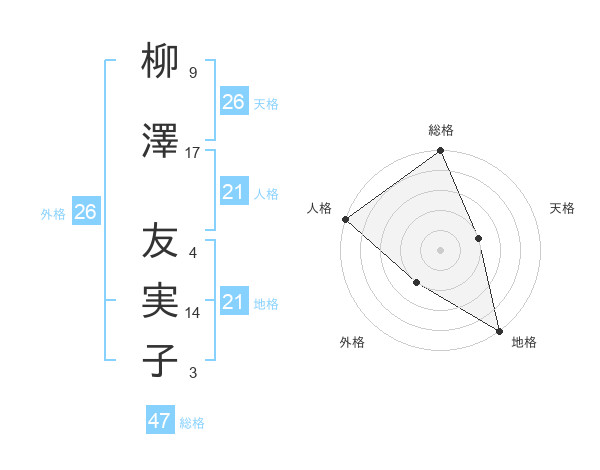 柳澤 友実子さんを姓名の画数から五運を鑑定