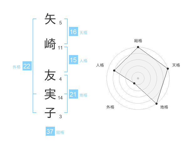 矢崎 友実子さんの総格は37画の5点!