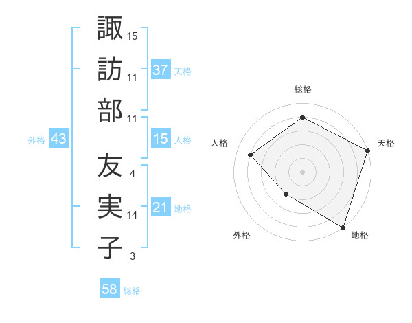 諏訪部 友実子さんを姓名の画数から五運を鑑定