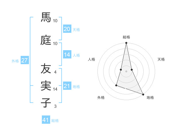 馬庭 友実子さんの総格は41画の5点!