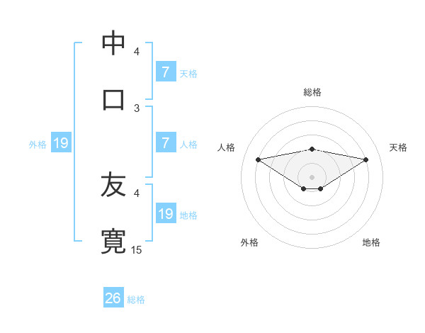 中口 友寛さんの総格は26画の2点!