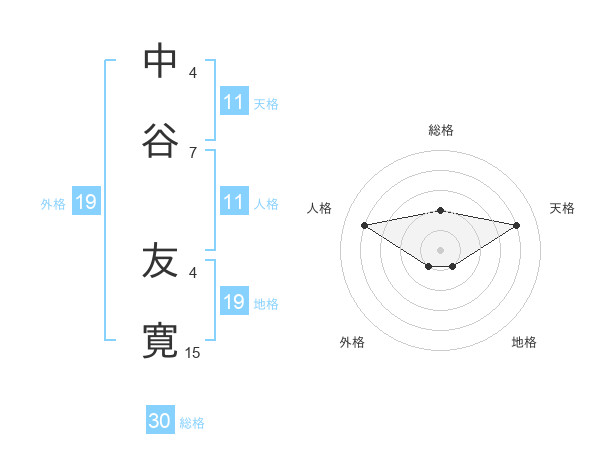 中谷 友寛さんの地格は19画の1点!