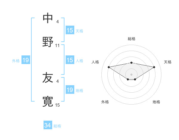 中野 友寛さんの人格は15画の4点!