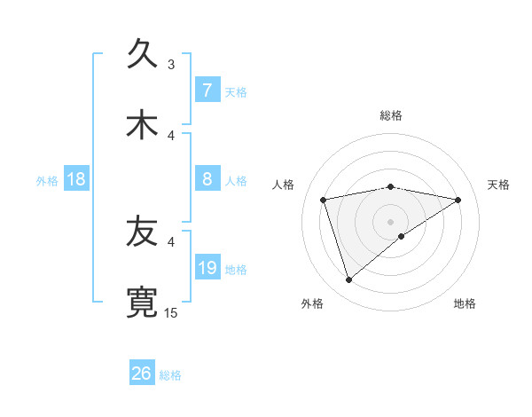 久木 友寛さんの総格は26画の2点!