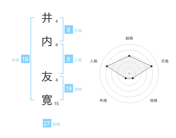 井内 友寛さんの総格は27画の3点!