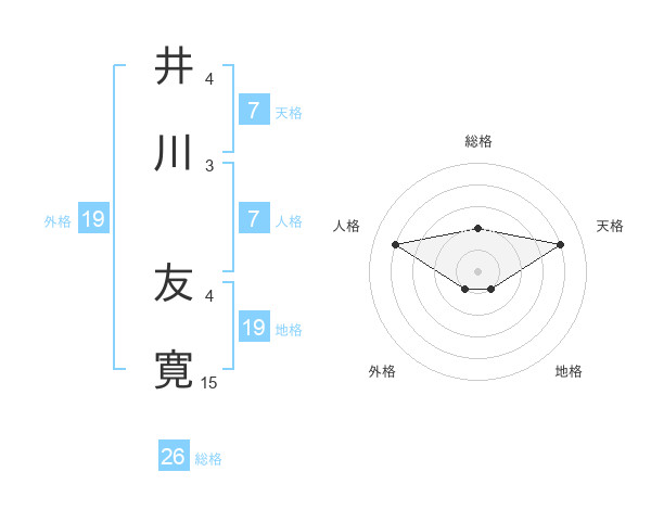 井川 友寛さんの総格は26画の2点!
