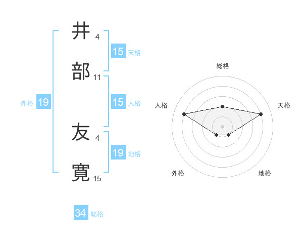 井部 友寛さんの総格は34画の2点!