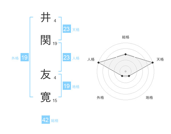 井関 友寛さんの地格は19画の1点!