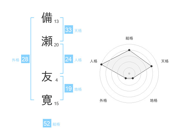 備瀬 友寛さんの総格は52画の4点!