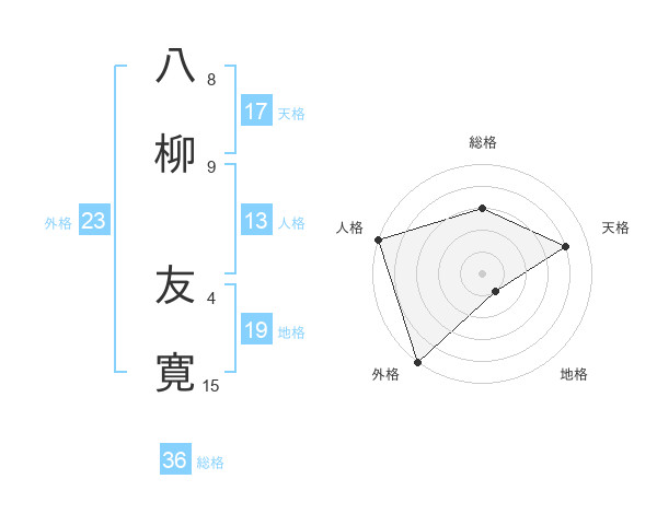 八柳 友寛さんを姓名の画数から五運を鑑定