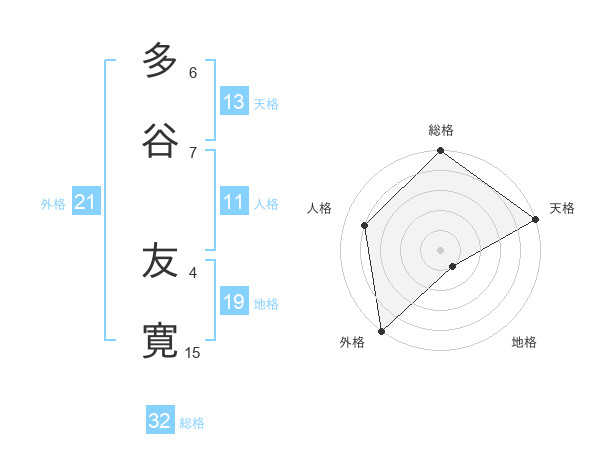 多谷 友寛さんの総格は32画の5点!