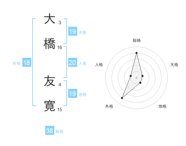 大橋 友寛さんを姓名の画数から五運を鑑定