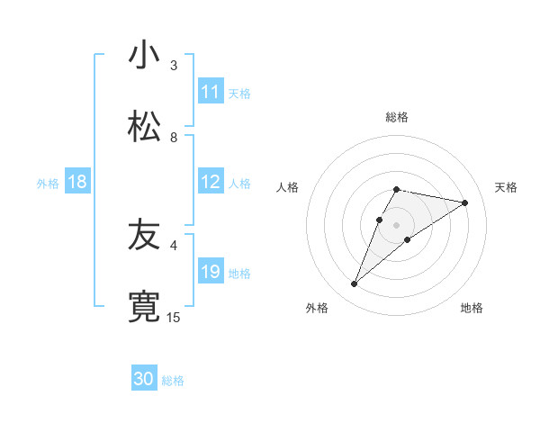 小松 友寛さんの天格は11画の4点!