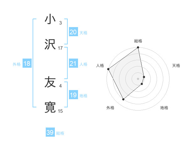 小沢 友寛さんの総格は39画の5点!