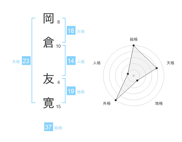 岡倉 友寛さんを姓名の画数から五運を鑑定