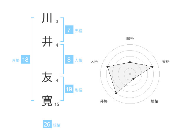 家系が持つ宿命的な運勢を表します。祖先から受け継いだ苗字ですので自分の力が及びません。家柄を象徴します。
