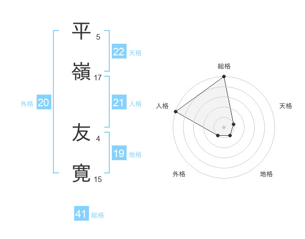 平嶺 友寛さんの総格は41画の5点!