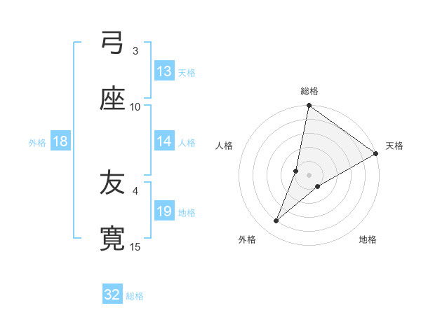 弓座 友寛さんの総格は32画の5点!