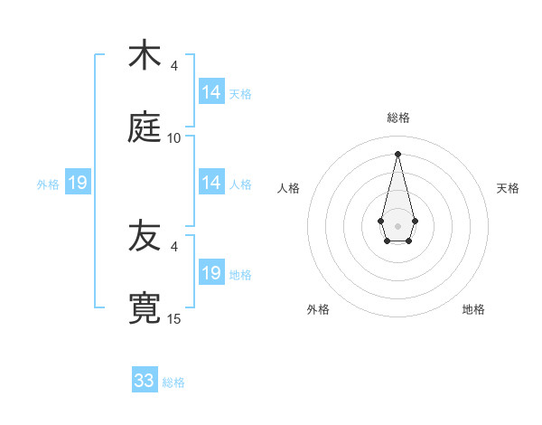 木庭 友寛さんの総格は33画の4点!