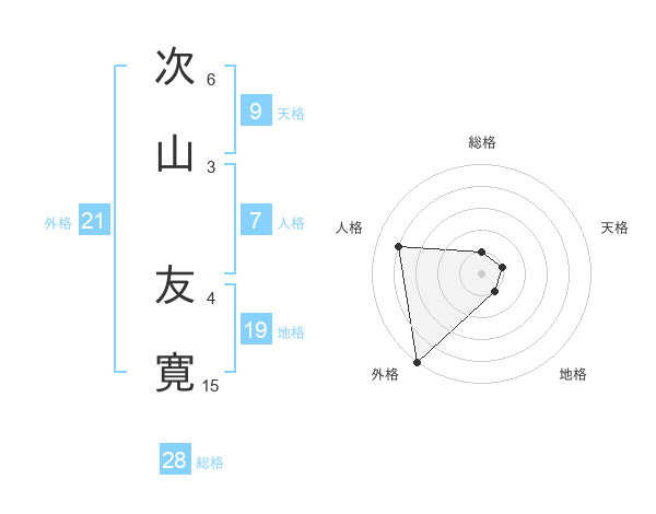 次山 友寛さんの外格は21画の5点!