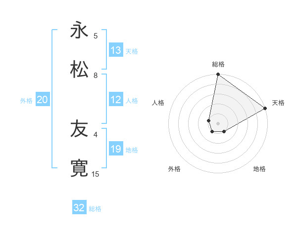 永松 友寛さんの総格は32画の5点!