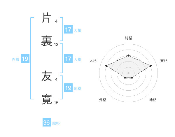 片裏 友寛さんを姓名の画数から五運を鑑定