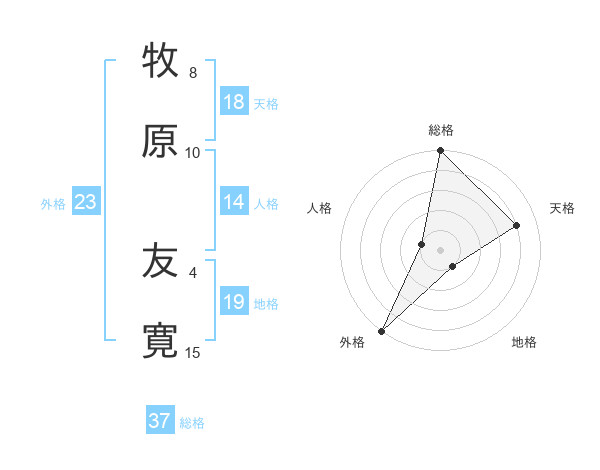 牧原 友寛さんの総格は37画の5点!
