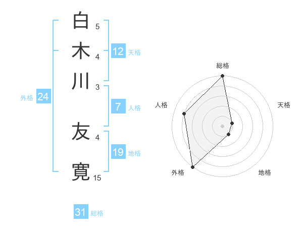 白木川 友寛さんを姓名の画数から五運を鑑定
