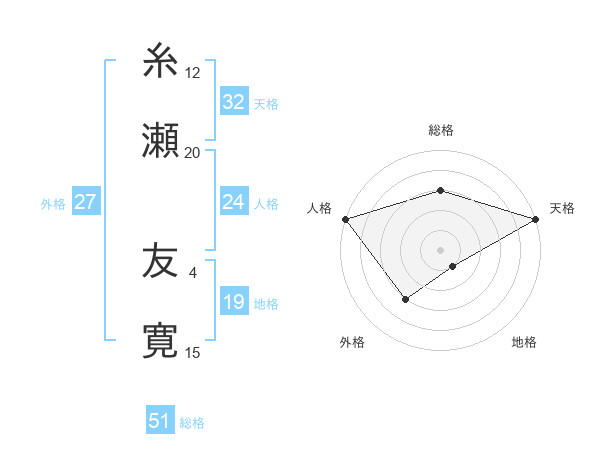 糸瀬 友寛さんの総格は51画の3点!