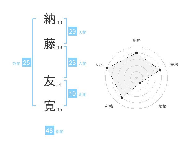 納藤 友寛さんを姓名の画数から五運を鑑定