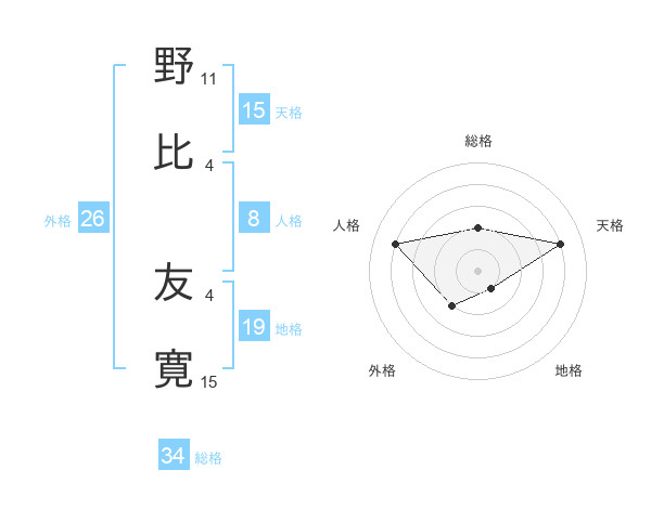 野比 友寛さんの天格は15画の4点!