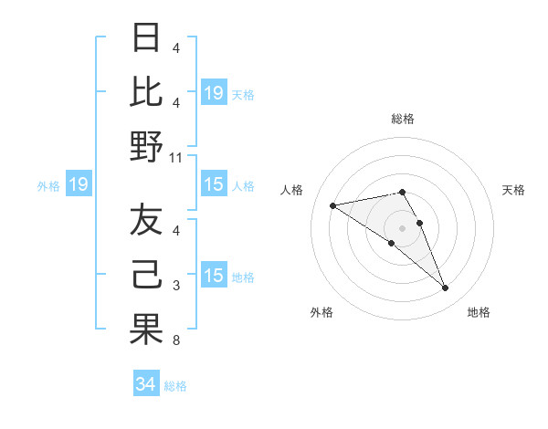 日比野 友己果さんの外格は19画の1点!