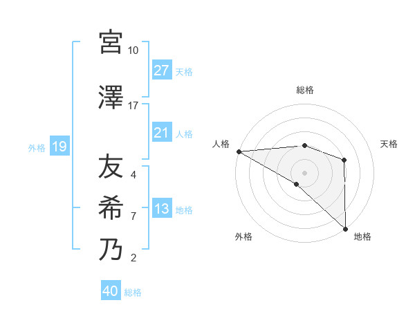 宮澤 友希乃さんの地格は13画の5点!