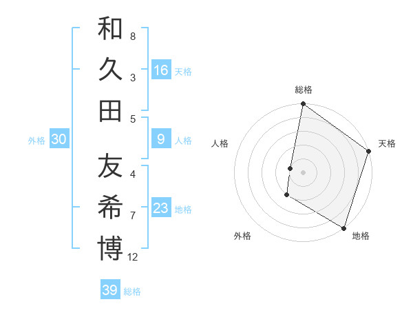 和久田 友希博さんを姓名の画数から五運を鑑定