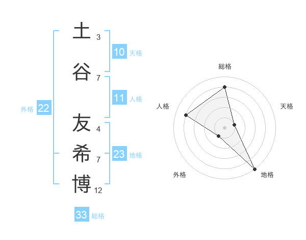 土谷 友希博さんの総格は33画の4点!