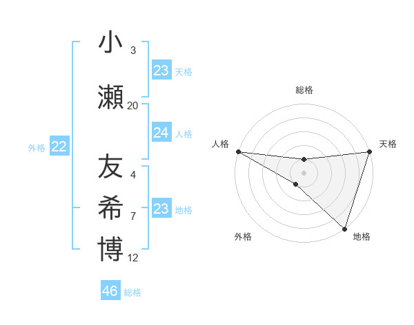 小瀬 友希博さんの天格は23画の5点!