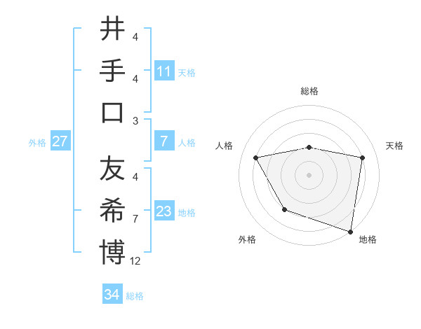 井手口 友希博さんを姓名の画数から五運を鑑定