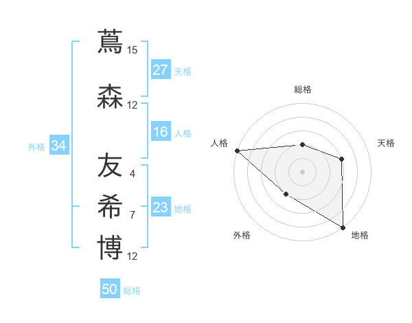 蔦森 友希博さんの総格は50画の2点!