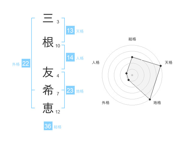 三根 友希恵さんを姓名の画数から五運を鑑定
