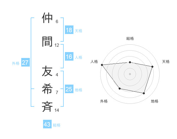 仲間 友希斉さんを姓名の画数から五運を鑑定