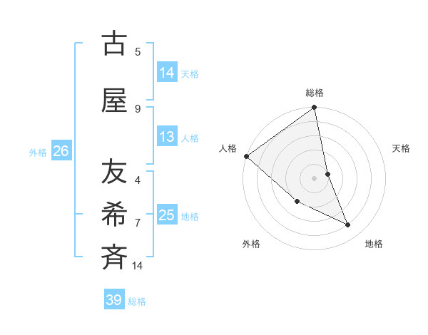 古屋 友希斉さんを姓名の画数から五運を鑑定