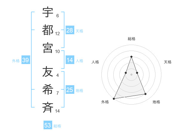 宇都宮 友希斉さんの地格は25画の4点!