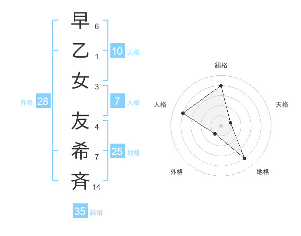 早乙女 友希斉さんを姓名の画数から五運を鑑定