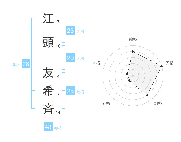 江頭 友希斉さんを姓名の画数から五運を鑑定