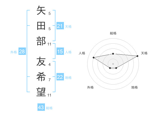 矢田部 友希望さんを姓名の画数から五運を鑑定