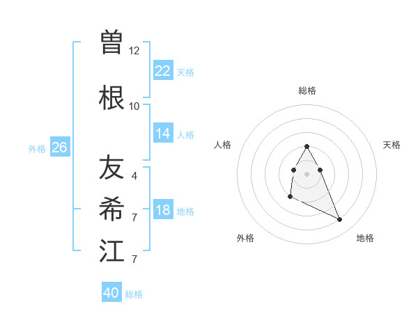 曽根 友希江さんを姓名の画数から五運を鑑定
