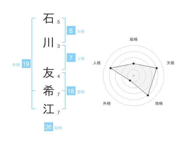 石川 友希江さんの天格は8画の4点