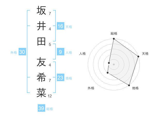 坂井田 友希菜さんの総格は39画の5点!